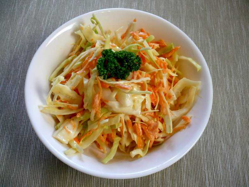 Oloupanou mrkev nahrubo nastrouháme a promícháme se zelím.