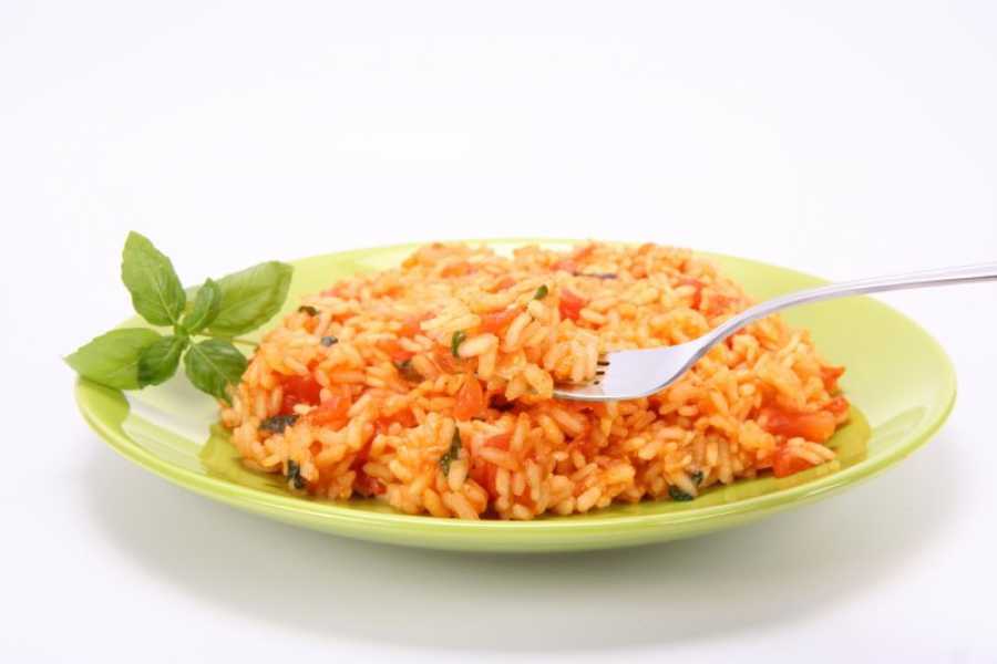 Podušená rajčata vmícháme do dušené rýže a pokrm posypeme jemně nasekanou petrželovou natí.