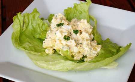 Uvařená vejce oloupeme a nakrájíme na kousky.