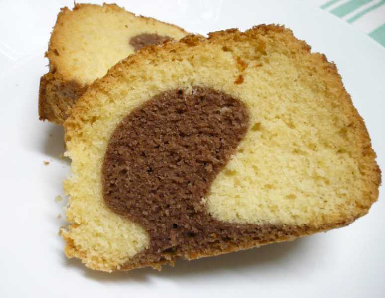Půlku hmoty nalijeme do bábovkové formy a do druhé poloviny vmícháme kakao a pak nalijeme do formy.