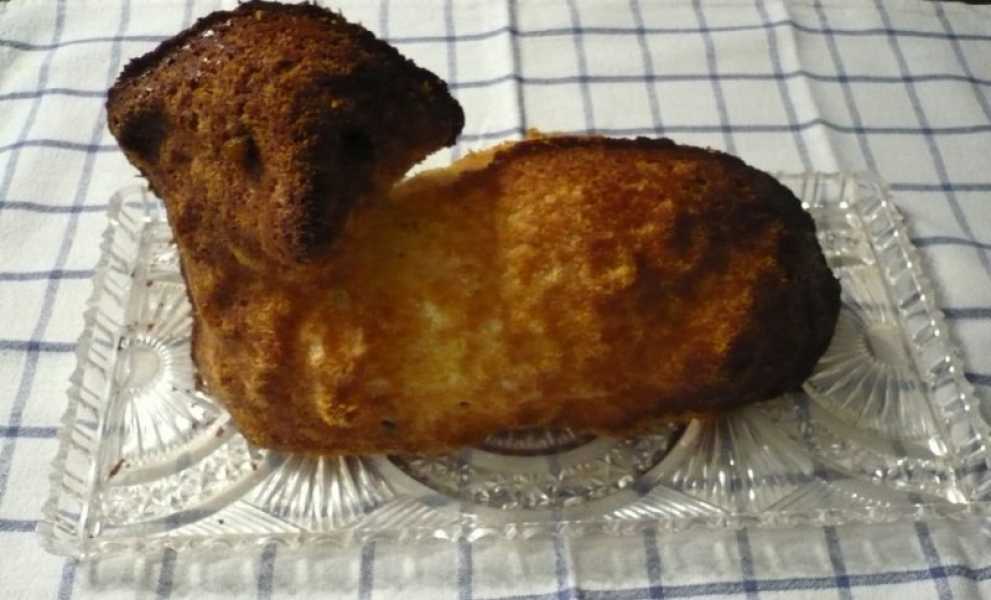 Beránka po vyklopení ozdobíme v místě očí rozinkami.